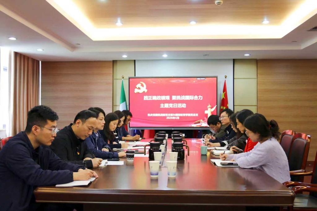 4月17日,机关党委统战部党支部和国际教育学院党总支联合开展“践正确政绩观,聚统战国际合力”主题党日活动,机关党委统战部党支部和国际教育学院党总支全体党员参加活动。会议由统战部党支部书记和国际教育学院党总支书记钱佳主持。
